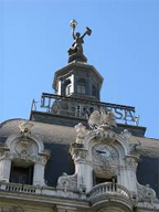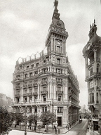 The magnificent Edificio La Prensa, today Casa de la Cultura, a beautiful example of academicist architecture, Edificio La Prensa & statue on top. Completed in 1898, the Beaux-Arts exterior is notable also for its spire, which is topped by a gilt bronze monument to freedom of the press represented by goddess Pallas Athena (Minerva) weighing 4 tons and who stands 50 m (150 ft) above the ground and holds an electric lamp representing Prometheus' sacred fire of information and on the other hand a newspaper and wassculpted by Maurice Bouval.