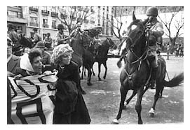 Crowds gathered once again on April 2, 1982 to hail de facto President Leopoldo Galtieri for starting the Falklands/Malvinas war. Since the late 1970s, this is where the Mothers of the Plaza de Mayo have congregated with signs and pictures of desaparecidos, their children, who disappeared (murdered) by the Argentine military in the Dirty War, during the National Reorganization Process. The Argentine military was anti-Communist, and people perceived to be supportive of such ideas would be illegally detained, subject to abuse and torture, and finally murdered in secret. (top...)
